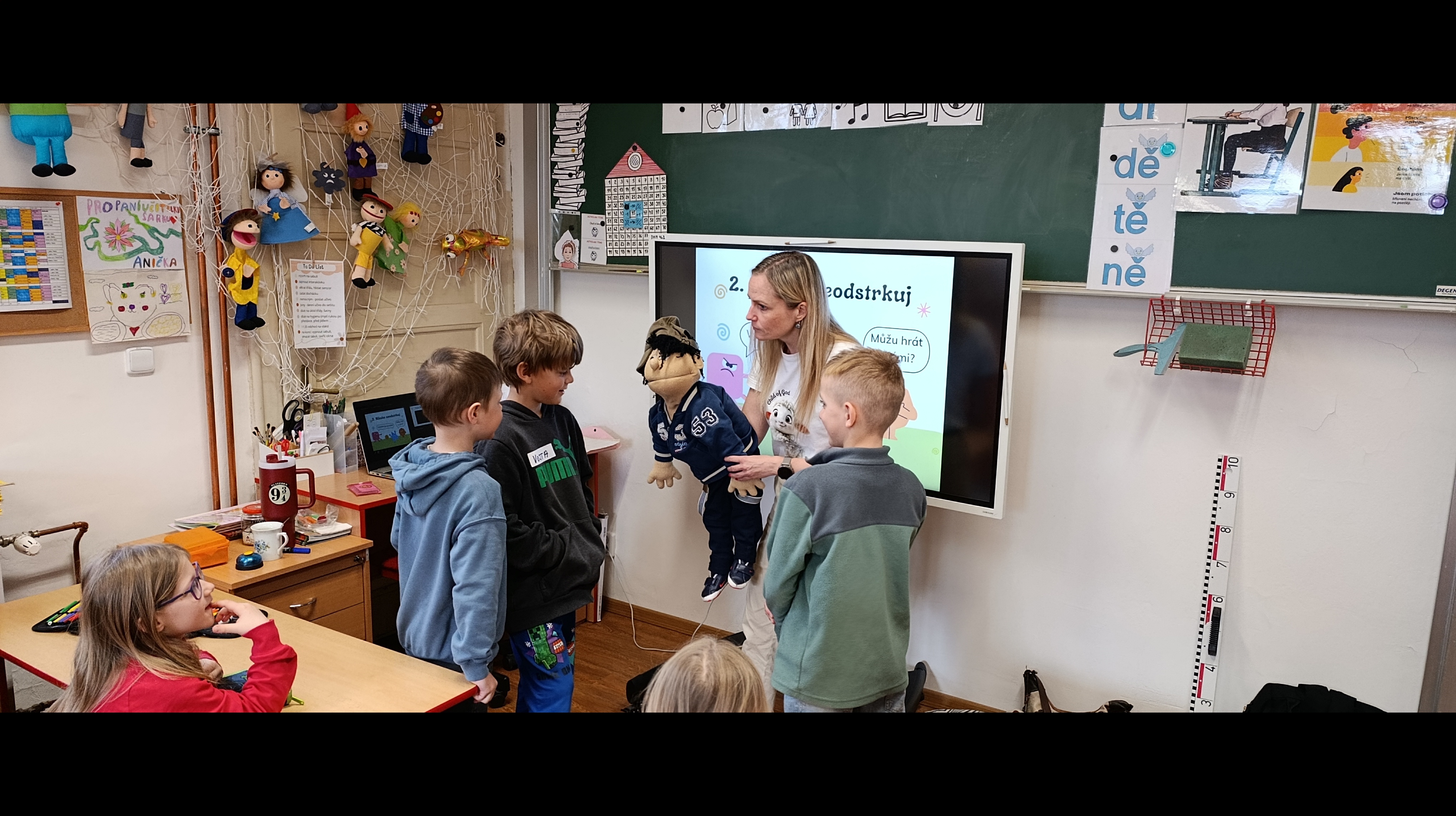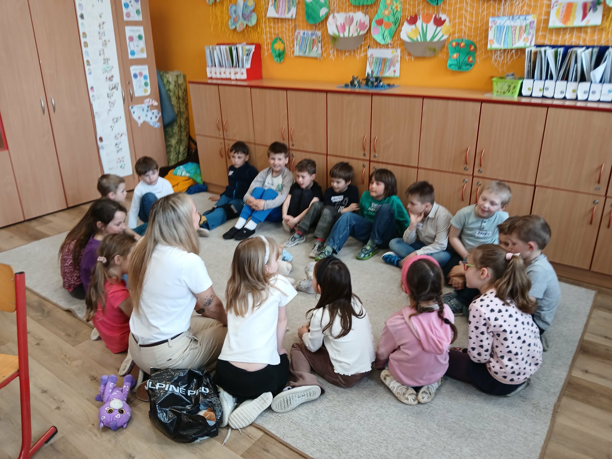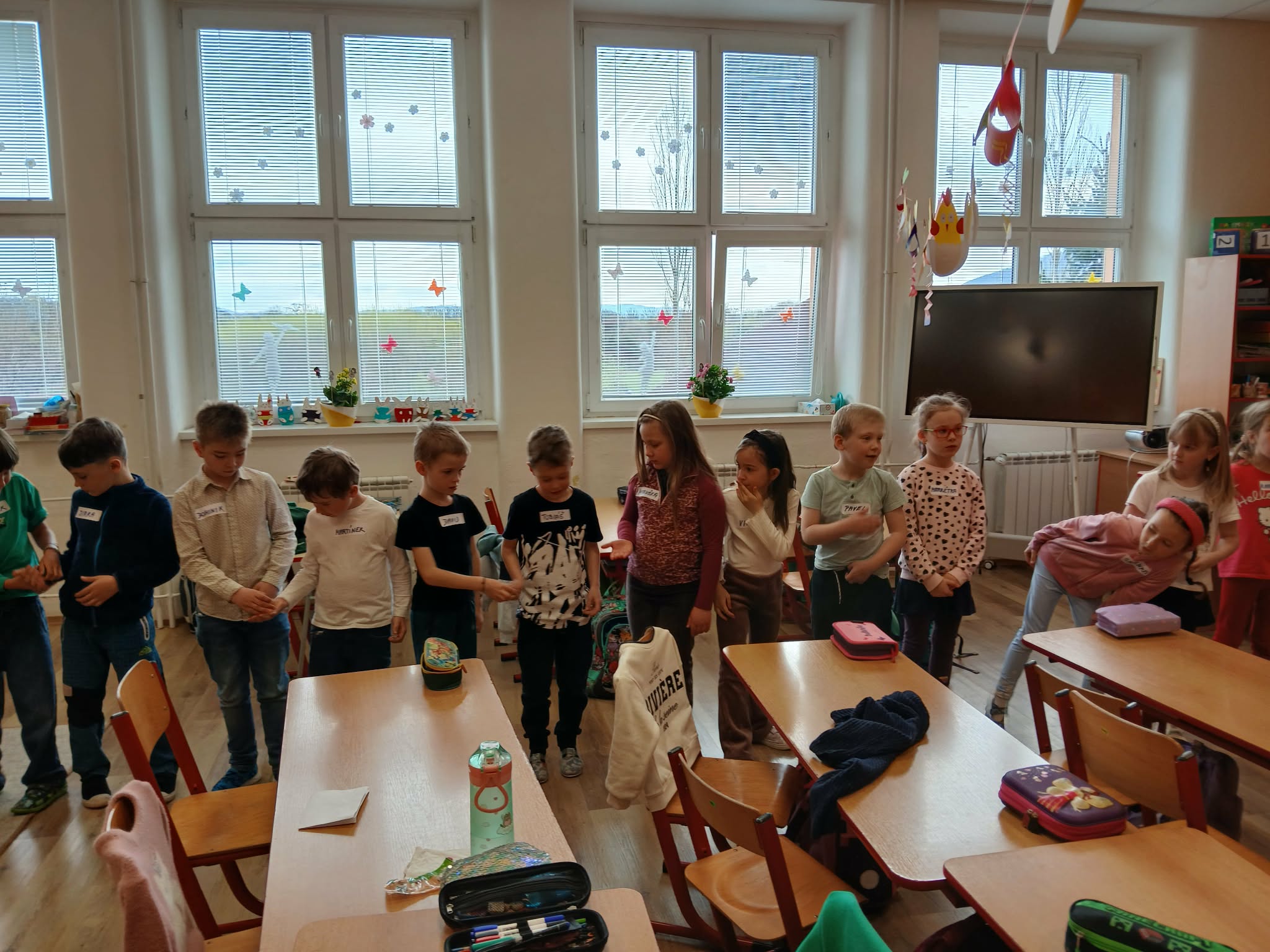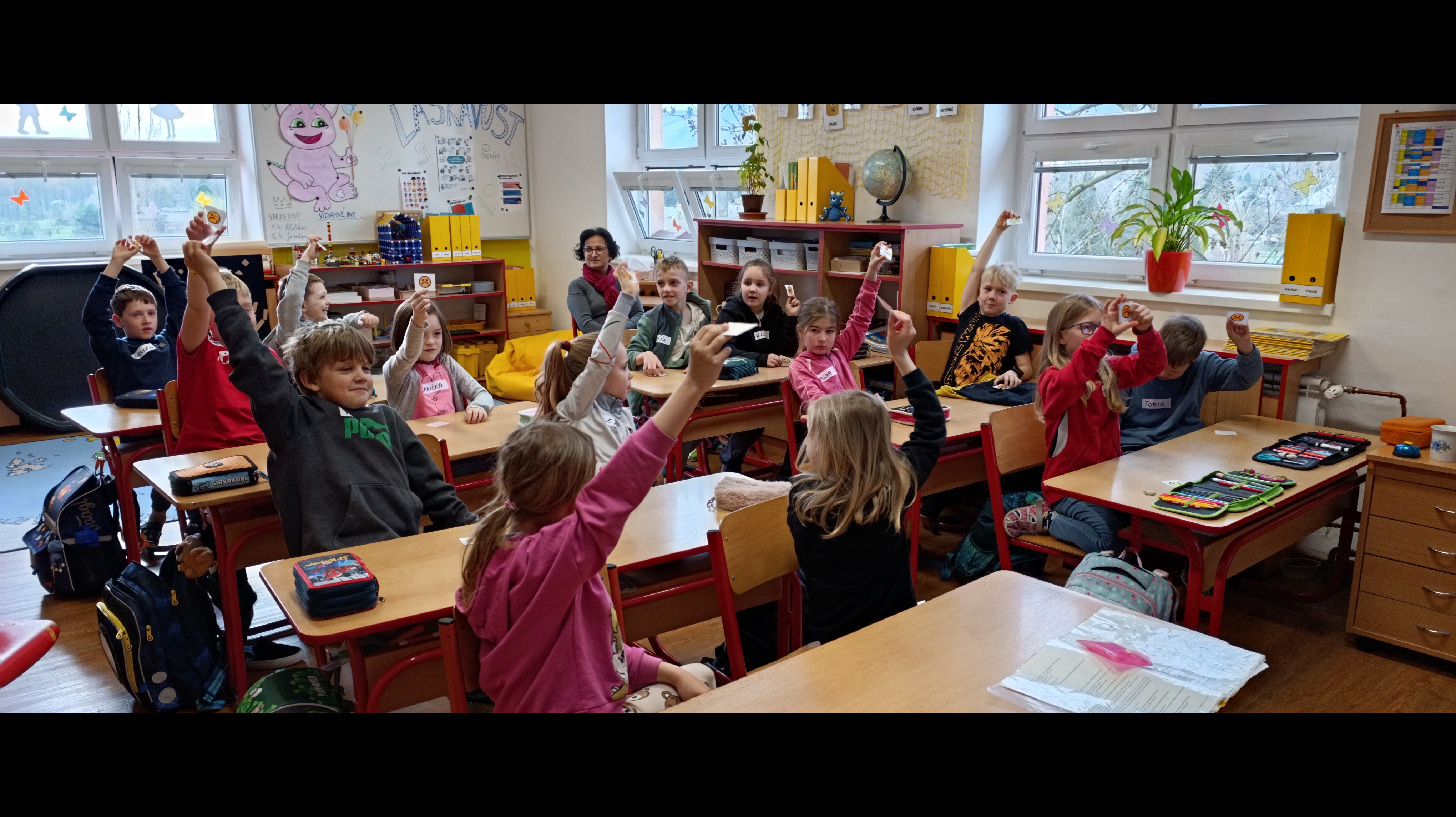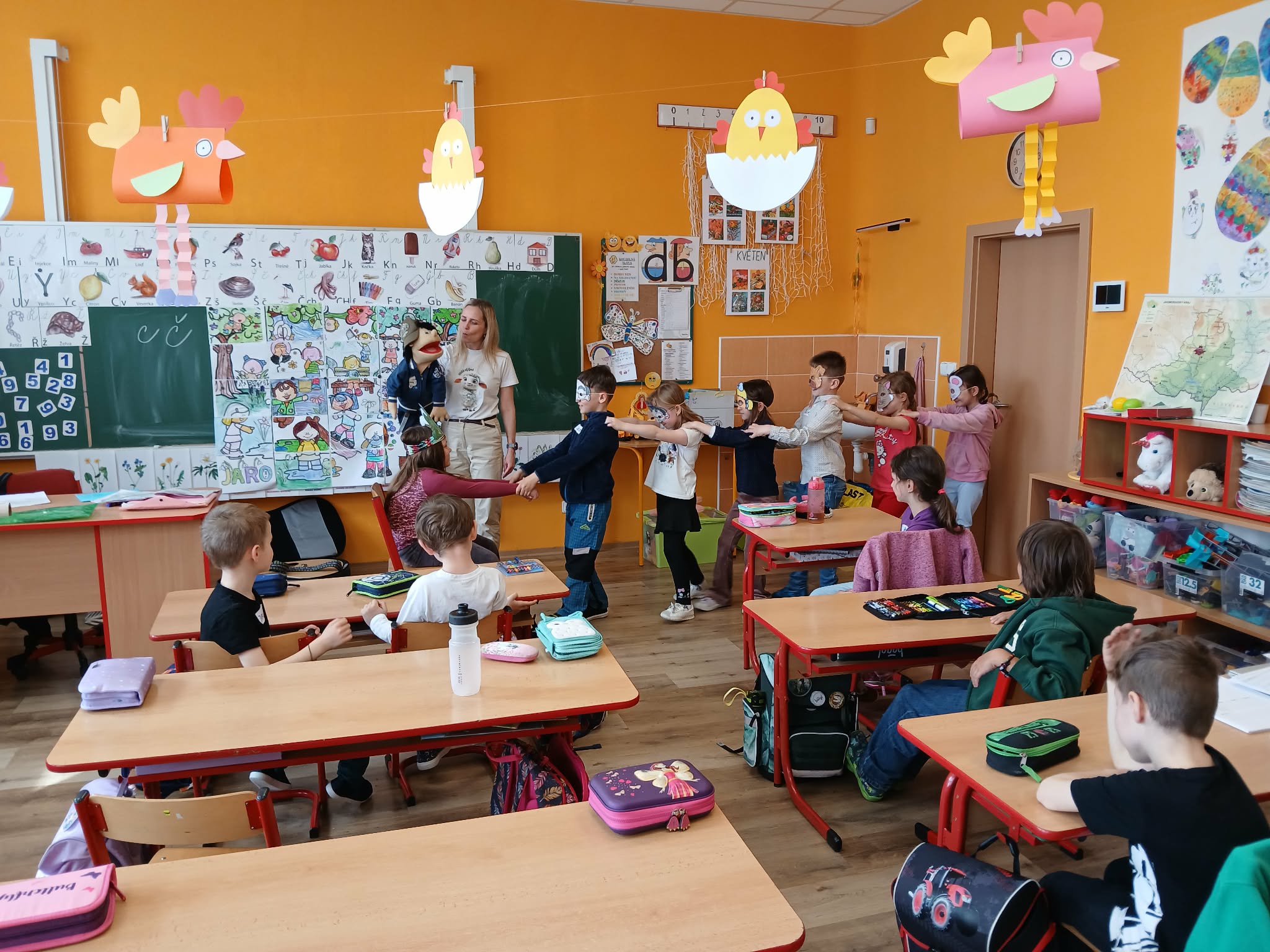 V úterý 14. dubna měli žáci druhého ročníku po dobu dvou vyučovacích hodin netradiční výuku. Do třídy za nimi dorazila paní lektorka Radka Folwarczná ze společnosti Hope4kids se svým maňáskem Ludvíkem a širokou zásobou aktivit a her zaměřených na prohlubování vztahů ve třídě. Etická dílna s názvem “Buďme kamarádi” žáky laskavým přístupem provedla problematikou řešení každodenních problémů a vzájemné komunikace. Sehráli scénky, ve kterých předvedli, jak se mohou zastat sami sebe i spolužáků, když se jim někdo vysmívá nebo jim jinak ubližuje. Zazpívali si s kytarou, hráli si na špiony nebo hlasovali v důležitých otázkách zmíněného tématu a následně o nich diskutovali. Jednou z probíraných oblastí bylo trávení volného času a nebezpečí nadužívání mobilních telefonů, herních konzolí aj. při hraní her a sledování videí oproti skutečným vztahům a zážitkům s kamarády. Druháčci se k celému programu postavili s vervou, hlásili se, zapojovali a ukázali, že jim tato témata nejsou cizí.
