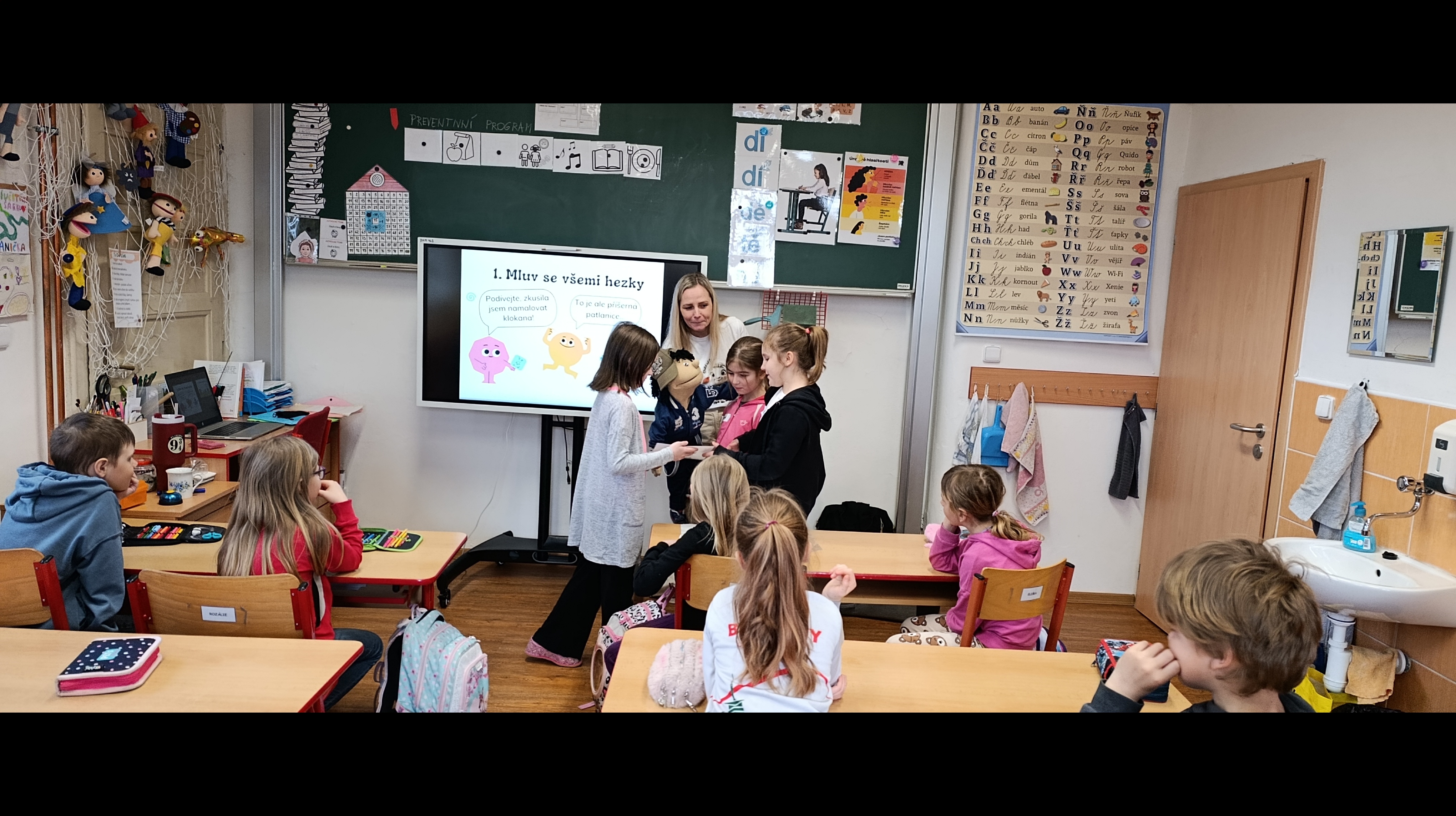 Žáci 1. ročníku se zúčastnili preventivního programu s názvem „Hrajeme si spolu“. Program byl zaměřen na posílení spolupráce, ohleduplnosti, zvládání konfliktních situací a prevenci šikany a agrese. Děti se učily vnímat výhody spolupráce oproti soupeření, rozvíjely trpělivost a schopnost počkat na ostatní bez odstrkování. Prostřednictvím hravých aktivit, popletené pohádky, písniček a divadla s plyšáky si tyto dovednosti prakticky vyzkoušely. Programem je provázela maňásková loutka. Dětem se aktivity líbily a aktivně spolupracovaly.